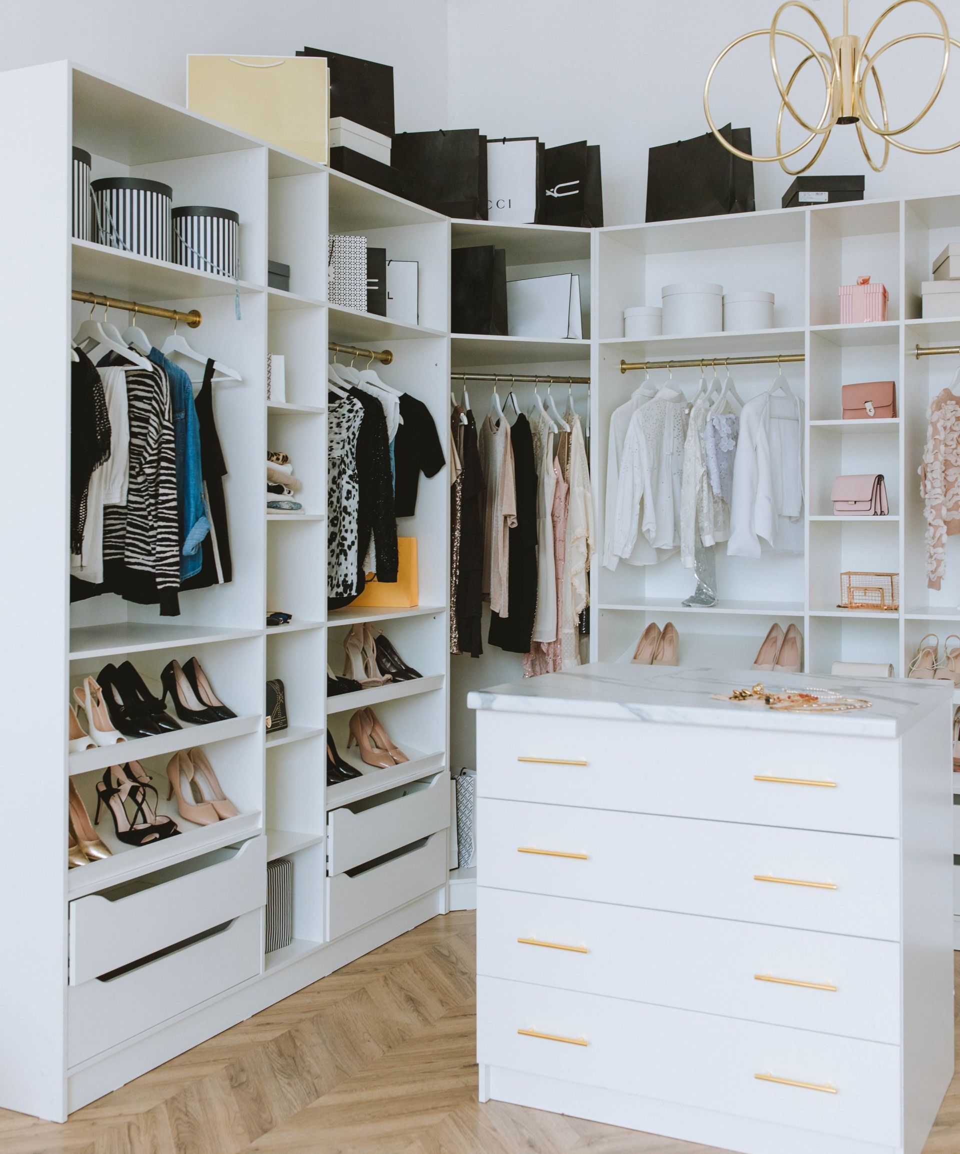 Together we can build you the closet of your dreams. Organization partnered with beautiful lighting and custom shelving will surely put a smile on your face!